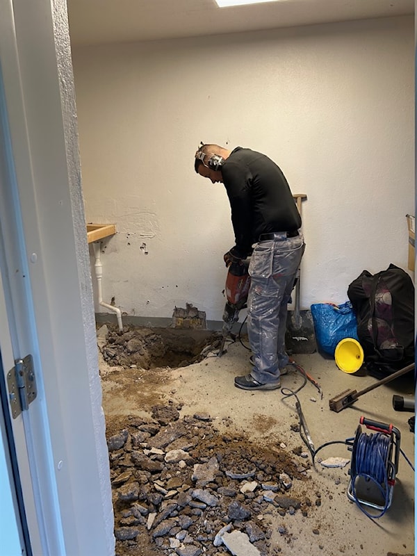 Nu har arbetet med stamrenoveringen påbörjat. Rivningen av befintliga ytskickt, stammar och avlopp är klart!