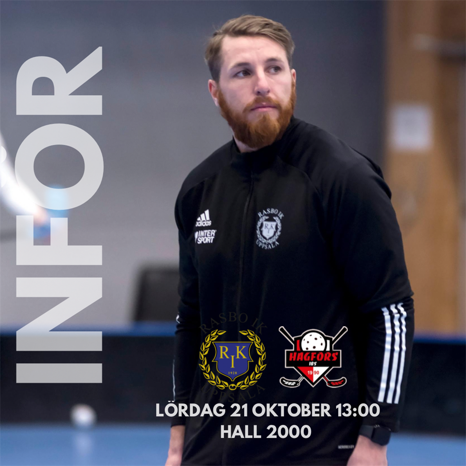 Dags för match igen! Rasbo IK kommer från en bortaförlust i Mora och Hagfors kommer ifrån en hemmaseger mot Björklinge BK. TRUPPSTATUS – Skadeläget är oförändrat. Lucas Wenman & Johan Strandberg är fortfarande skadade. Daniel Stenlund & Gabbe Wall kommer ej att spela på lördag,meddelar ledarstaben. SPANINGAR * 4 matcher har spelats och än så länge har Rasbo enbart lyckats dragit in 1 poäng, laget är mycket motiverade att börja plocka poäng igen. * Inga stora förluster i matcherna som varit hittills, några små justeringar så bör resultaten kunna se annorlunda ut. * Många fina insatser under matchen mot KAIS Mora senast, vässar konkurrensen i truppen ytterligare. * Säsongens 3:e hemmamatch, Rasbo har vunnit 6 av 10 senaste tävlingsmatcherna i Hall 2000. LEDARKOLLEN Felix Esevik inför matchen:?– En härlig utmaning som väntar för oss. Vi kommer från en rad matcher där vi förlorat med små marginaler. Vi har under säsongen tagit steg framåt, men det har Hagfors säkert också gjort. Så det blir spännande och jag hoppas att vi kan göra en riktigt bra prestation och få med oss ett bra resultat, säger Felix.?– Vi står inför en utmaning redan nu i början av säsongen och det är bara fyra dagar fram till nästa match, därefter fyra dagar igen till nästa match. Så vi behöver hitta en hälsosam rotation i ett tätt matchande. OM HAGFORS IBS * Ligger på fjärde plats i Division 1 Västra. * Isak Wessman är lagets bästa poänggörare efter 4 omgångar. * Första gången Värmlänningarna besöker Hall 2000. Matchen spelas hemma i Hall 2000 på lördag, matchstart 13:00!