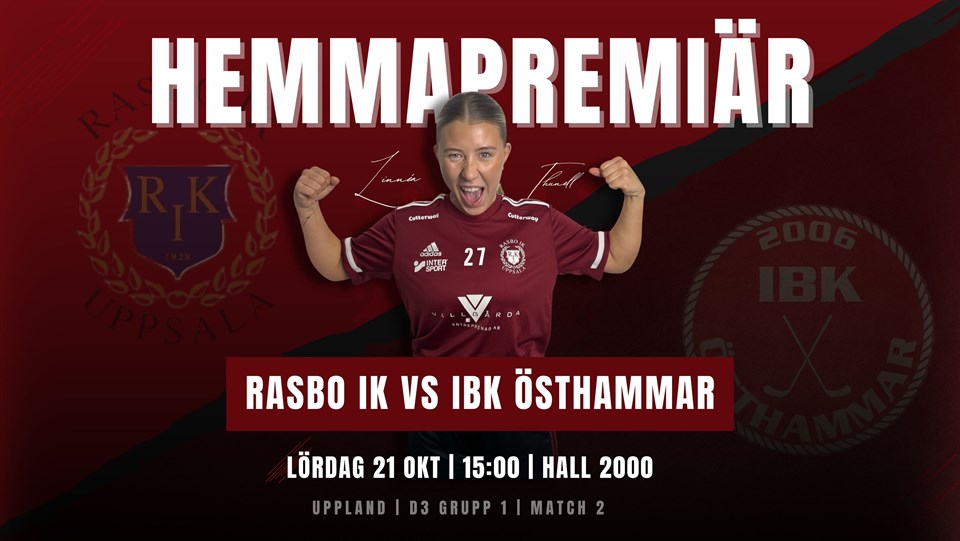 Imorgon tar vi emot IBK Östhammar för säsongens första hemmamatch i Hall 2000! Östhammar har startat nytt damlag för i år - alltså är det första gången i modern tid som lagen möter varandra. Helt okända är de dock inte, kollar ni noga i motståndarlaget kanske ni känner igen ett par spelare som har burit Rasbotröjan tidigare. Östhammar har visat på fin form med sex poäng efter två matcher spelade och ligger just nu etta i tabellen. Vi har fullt fokus på uppgiften och kommer göra allt för att gå därifrån med tre nya poäng in på kontot. Passa på att spendera en heldag i Hall 2000 - klockan 13 tekar herrarna igång mot Hagfors och vi kör igång direkt därefter, klockan 15. SES DÄR. ❤️