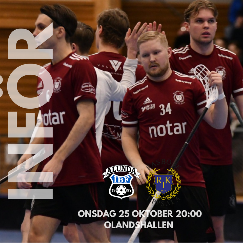 Dags för match! Inte vilken match som helst utan årets första riktiga derby. Ni kan sagan lika bra som vi kan, slaget om 288an. Vi stannar där. Truppstatus: – Skadeläget enligt följande: Lucas Wennman fortsatt skadad, Pontus Aspenlind och Oliver Raudasoja har dragit på sig skador. Nick Kyller är sjuk. Johan Strandberg och Emil Henriksson på bättringsvägen med sina skador och tränar igen med truppen, dock inte klart att dom kommer till spel. Spaningar: * Rasbo vände äntligen på den poängmässigt svaga starten och tog 3 poäng hemma mot ett starkt Hagfors. * Emil Persson Fondelius fick islossning senast och gjorde 3+1, viktigt inför morgondagens drabbning. * Derbyt kommer locka storpublik, det surras om publikrekord. Kollen: Christoffer Eriksson inför matchen: – Jag tycker att vi gjorde en bra match mot Hagfors, vi jobbar som ett lag genom hela matchen och gör många fina spelmål. Vi tar steg hela tiden både i offensiven och defensiven och äntligen fick vi resultat på detta. Nu väntar en match som alla vill vinna och jag vet att vår trupp är redo för utmaningen. Om vi fortsätter att spela vårt spel, jobbar lika hårt som vi alltid gör och håller fokuset på uppgiften är jag säker på att vi tar med oss 3 poäng tillbaka till Rasbo. Om Alunda: > Har spelat ihop 12 av 15 möjliga poäng hittills denna säsong. > Filip Dahl är lagets bäste poänggörare hittills med 10 poäng framåt. > Micke Fredriksson är tillbaka på heltid i Alunda som spelare. För den som inte visste detta har Micke gjort 7 säsonger i vinrött. Matchen spelas på onsdag med start 20:00 i Olandshallen. Kan du ej befinna dig på plats sänds matchen via innebandy.tv